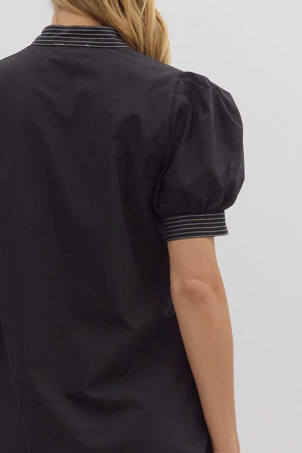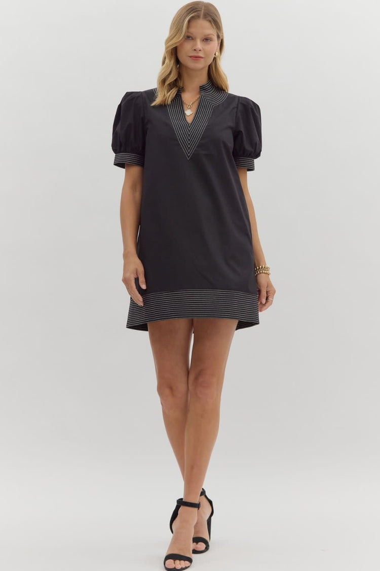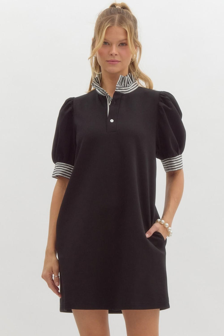 Mia Solid Cuff Band Short Puff Sleeve Pullover Mini Dress