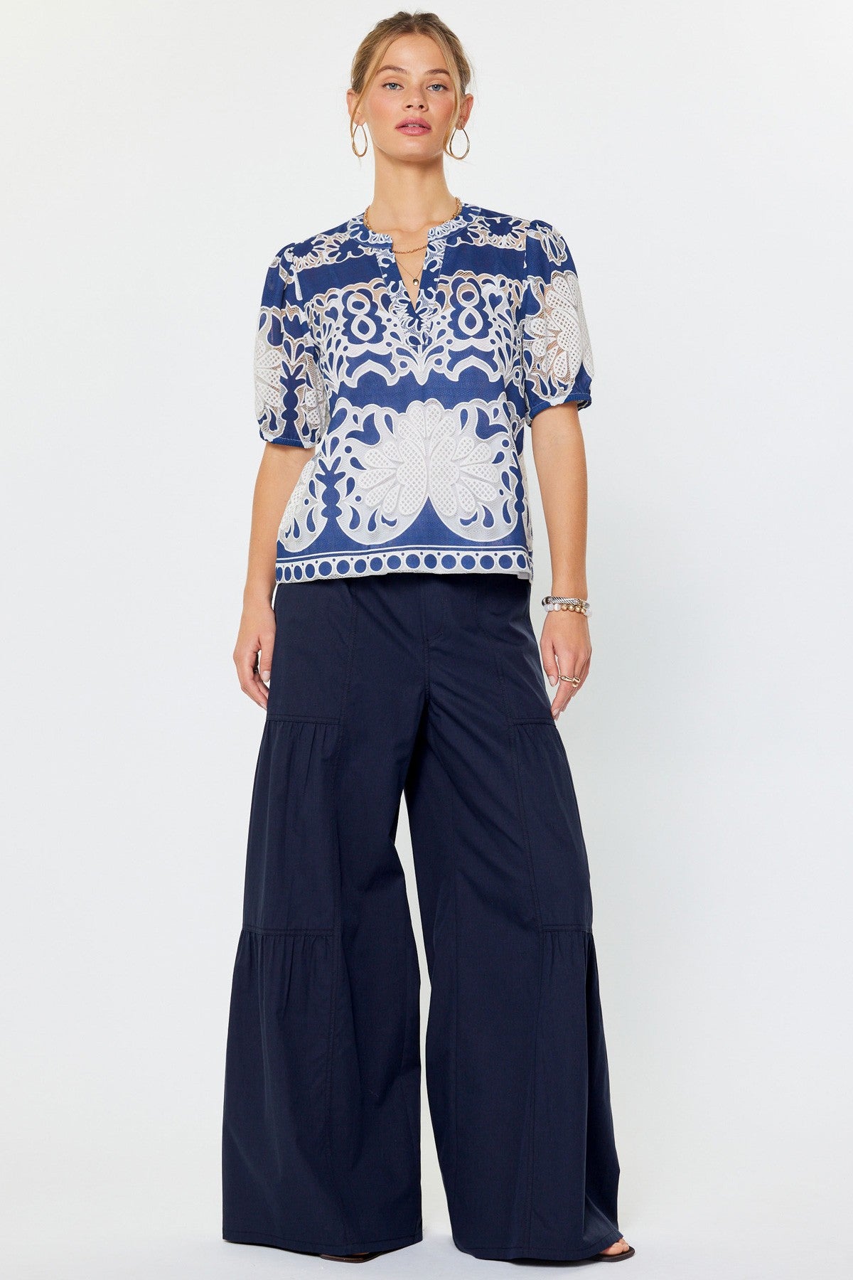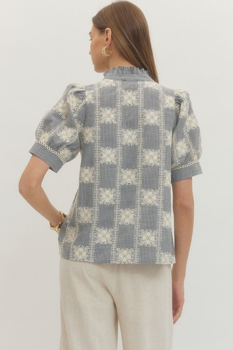 Danica Emboridered Short Puff Sleeve Blouse