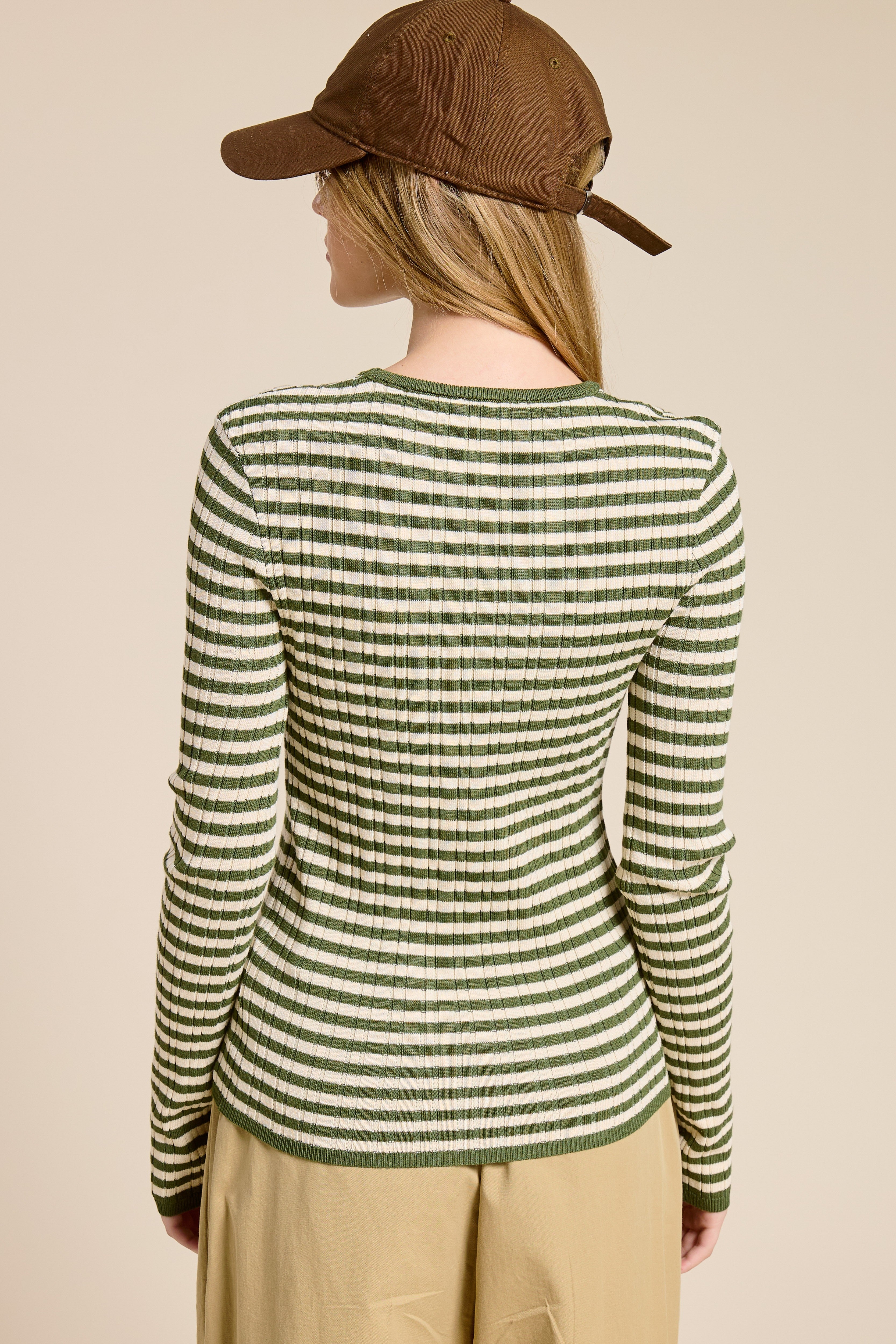 Ariah Ribbed Knit Striped Long Sleeve Top
