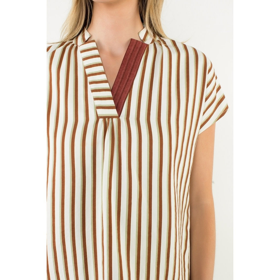 Cassie Contrast V-Neck Striped Top
