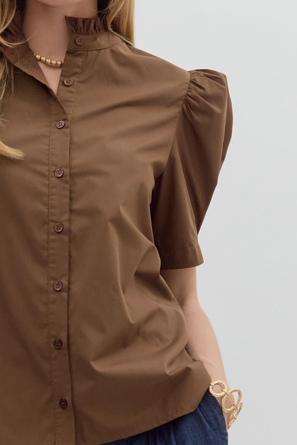 Ella Solid Puff Shoulder Short Sleeve Top