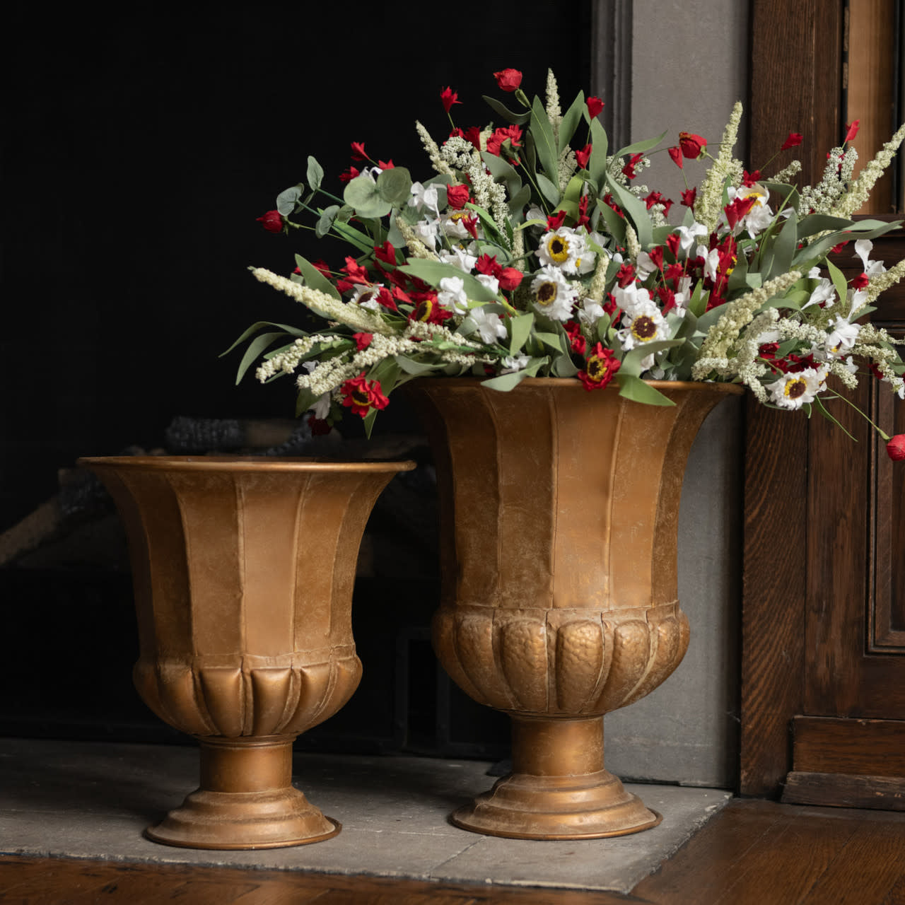 Gold Metal Mesh Lantern with Glass Hurricanes