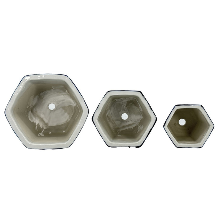 Blue & White Hexagon Floral Ceramic Ruffled Lip - Sold Individually