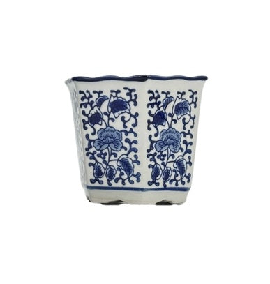 Ceramic Chinoiserie Planter Pot Round Blue & White - Sold Individually