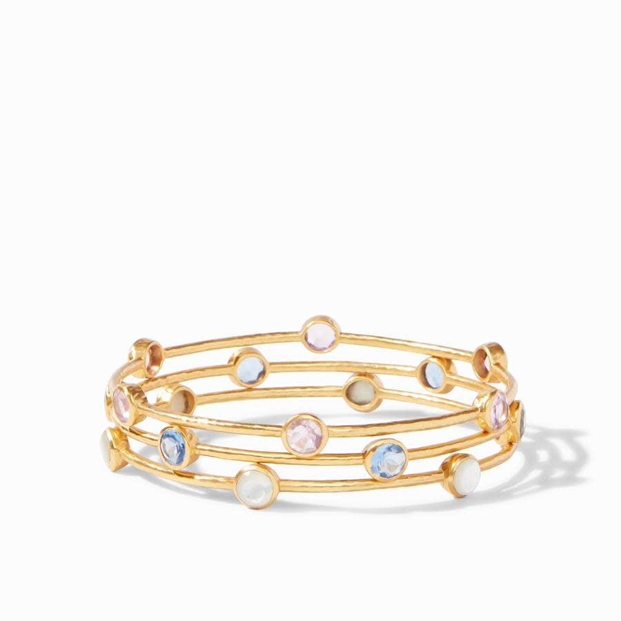 The Julie Vos collection features stunning gold statement earrings, elegant necklaces, stacked bracelets, rings, and timeless jewelry sets that elevate both everyday outfits and special occasions. Crafted with Julie Vos’ signature 24K gold plating over nickel-free brass, each piece is designed with intricate textures, gemstones, and luminous finishes that give the look of fine jewelry without the fine jewelry price.