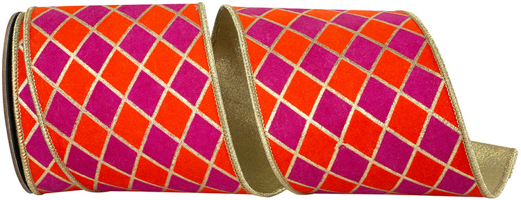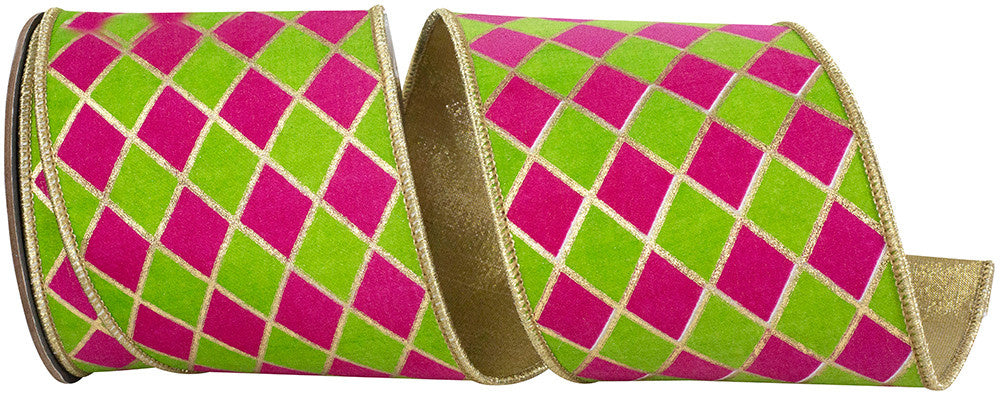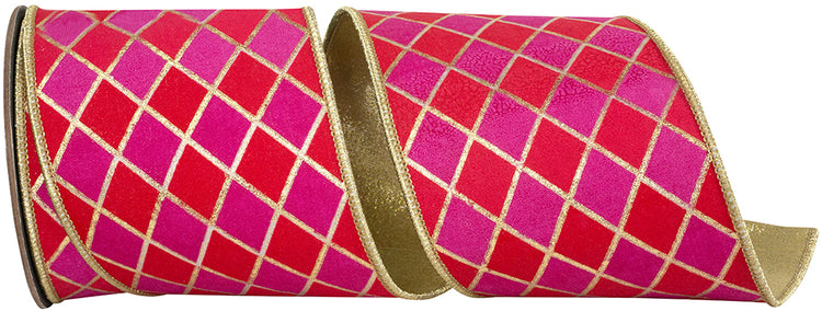 Plaid Dupioni Verde Diagonal Red Backed Wired Edge Ribbon- Red/Green