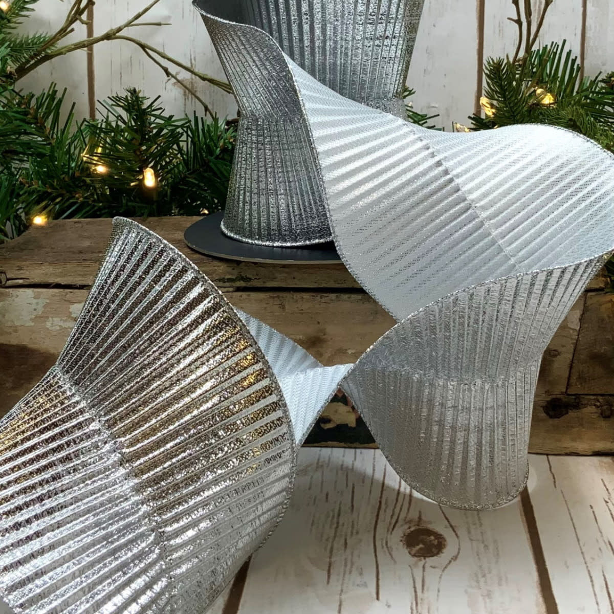 5" x 10yds Fluted Lame, Silver Ribbon