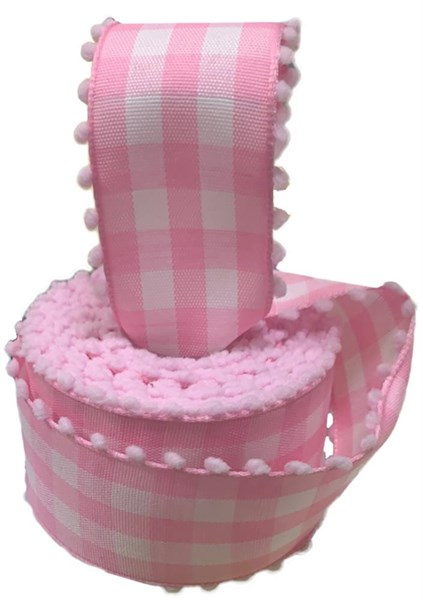1.5" X 10Yd Check Ribbon W/Poms