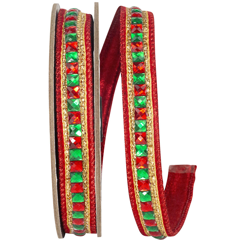 Sumptuous Jewel Accent Deluxe Metallic Backed Wired Edge Ribbon