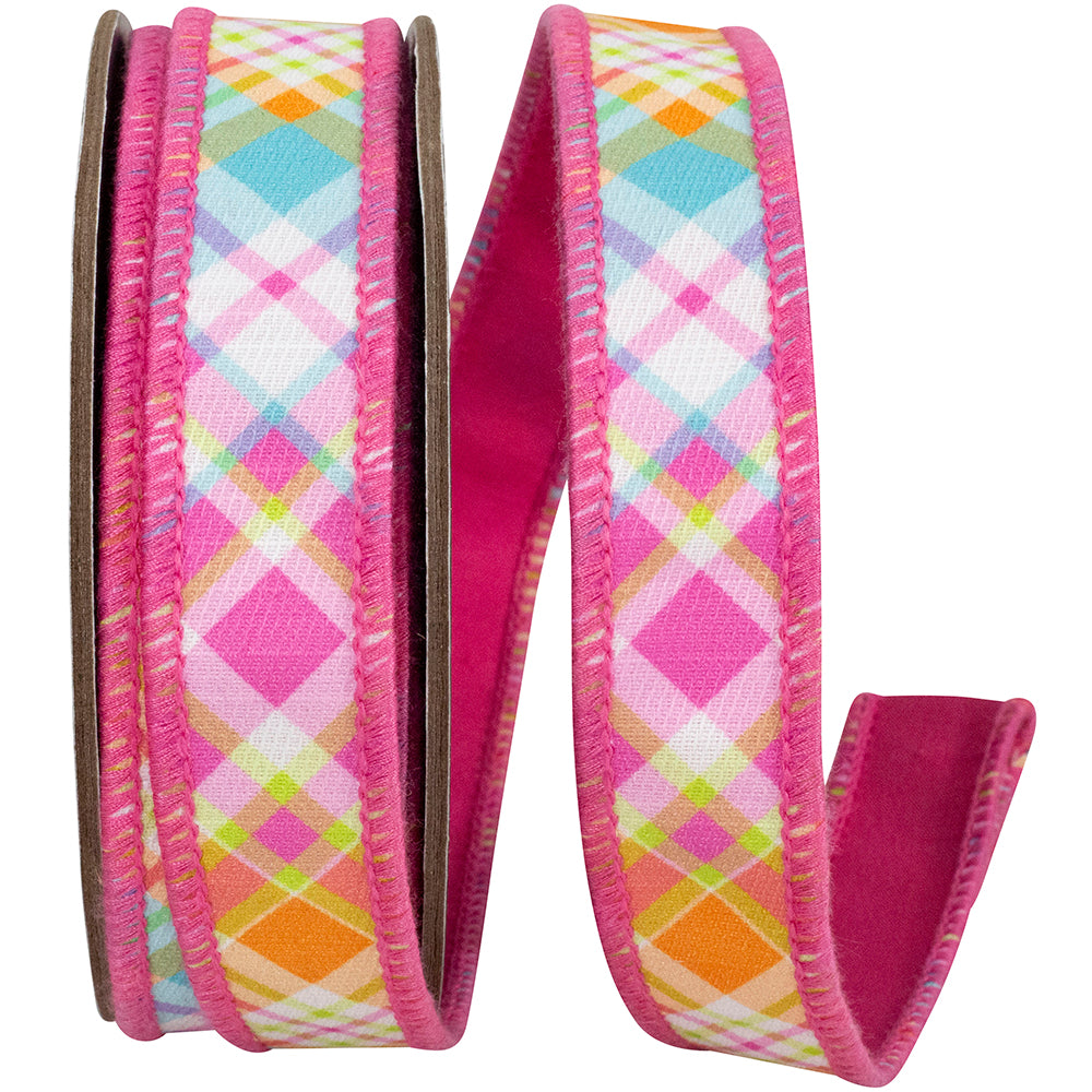 Bright Plaid Diagonal Deluxe Backed Wired Edge Ribbon