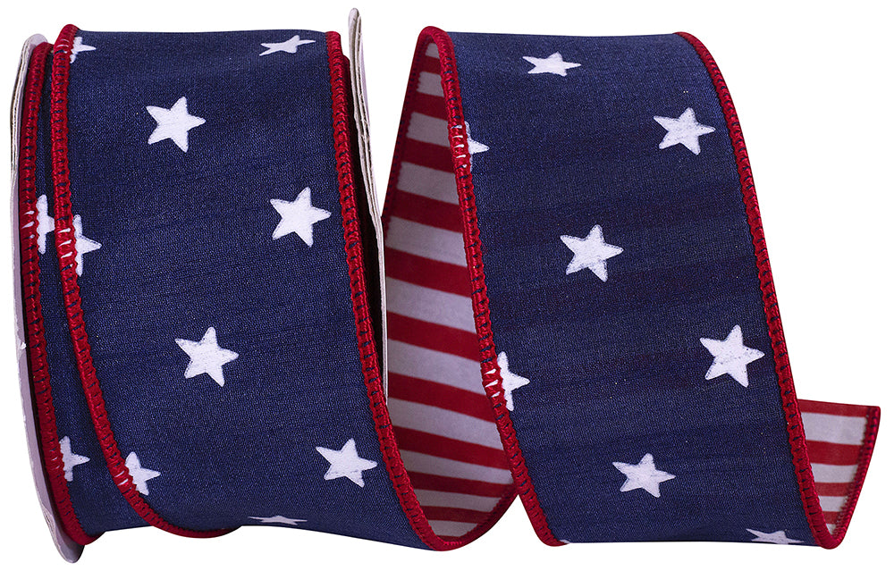 2.5 Inch Stars Dupioni Deluxe Striped Backing Wired Edge - Navy/Red