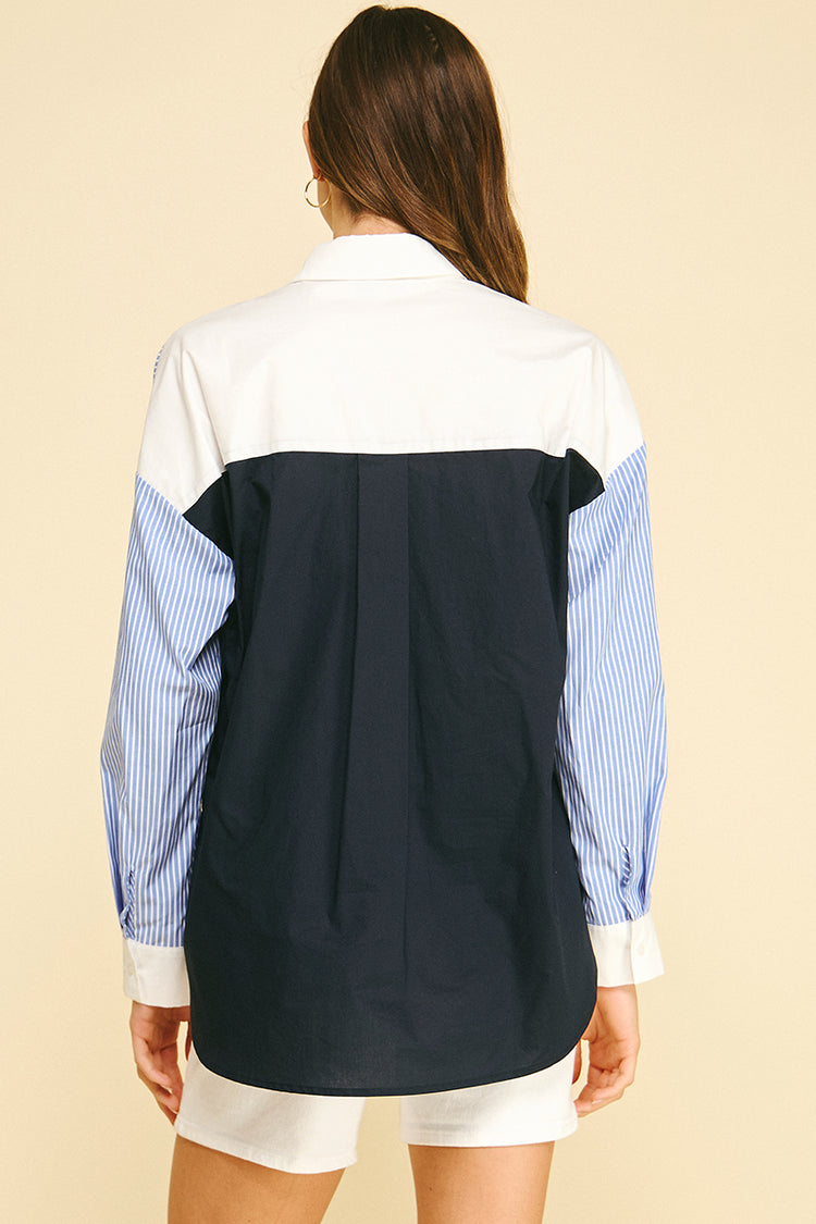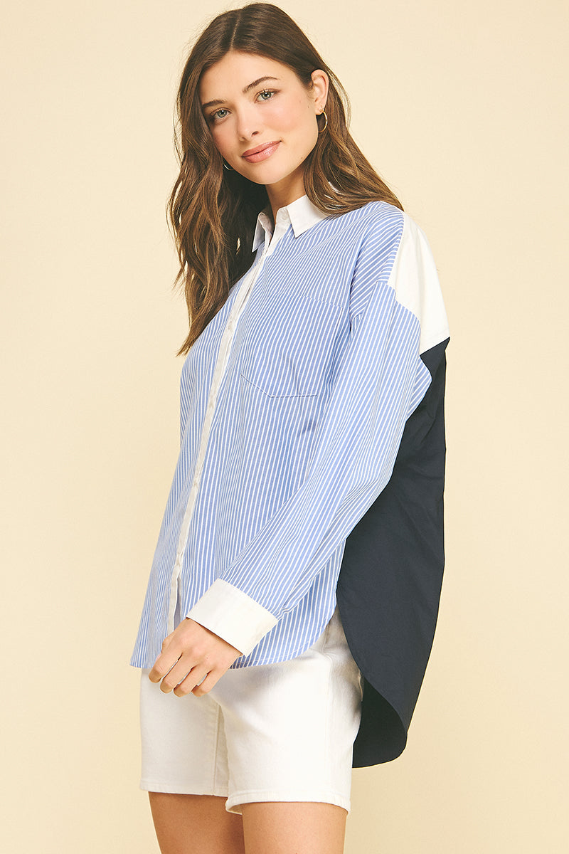 Rachel Contrast Striped Button Down Shirt