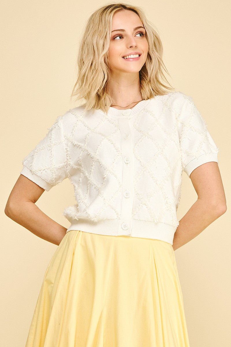 Amelia Textured Diamond Pattern Knit Cardigan