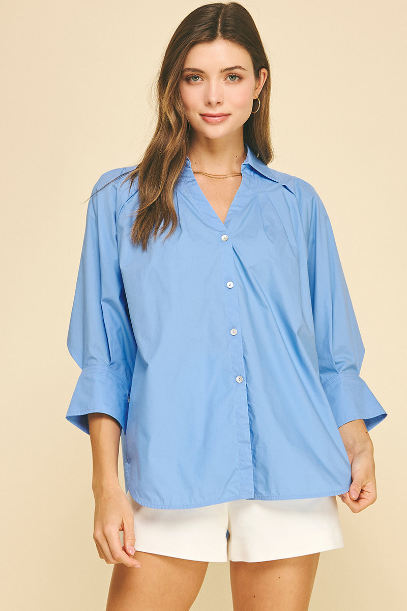 Elle V-Neck Collar Wide Cuff Shirt