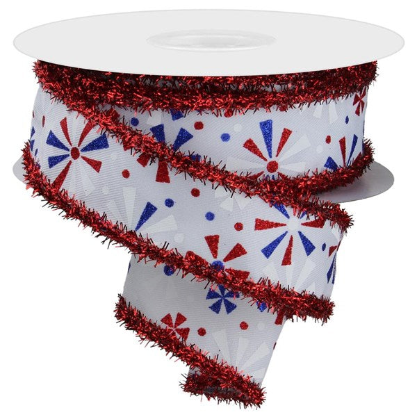 1.5" x 10yd Vintage Pinwheels/Tinsel Ribbon