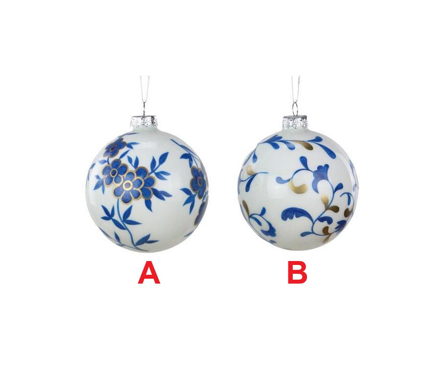 100MM White, Blue and Gold Glass Ball Ornament - Sold Individually