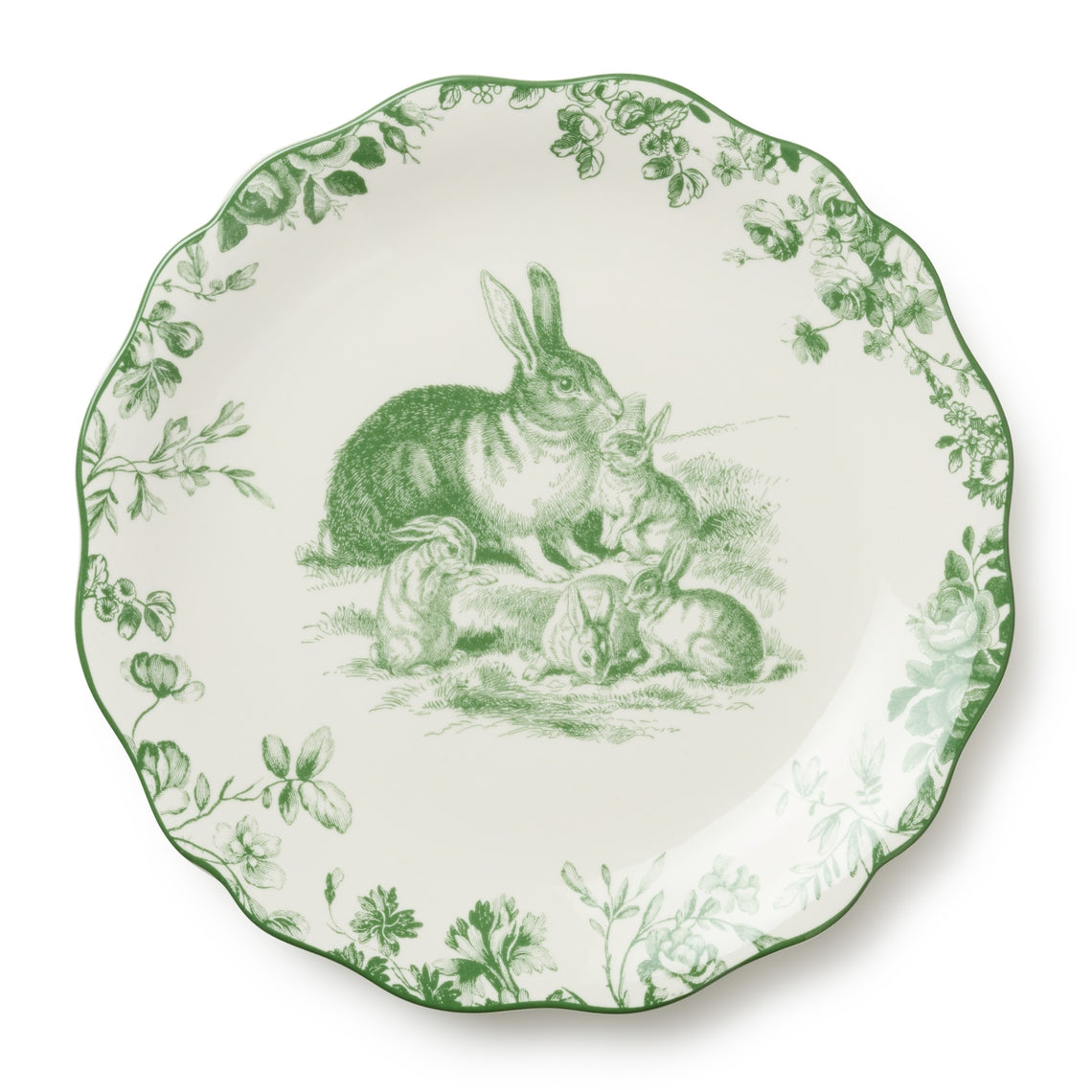 - Crafted in ceramic and adorned with delicate green illustrations of rabbits nestled in flourishing garden scenes, this plate evokes the nostalgic charm of French countryside living.