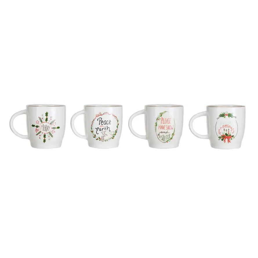 14 oz. Stoneware Mug w/ Holiday Saying & Gold Electroplated Rim - Sold Individually