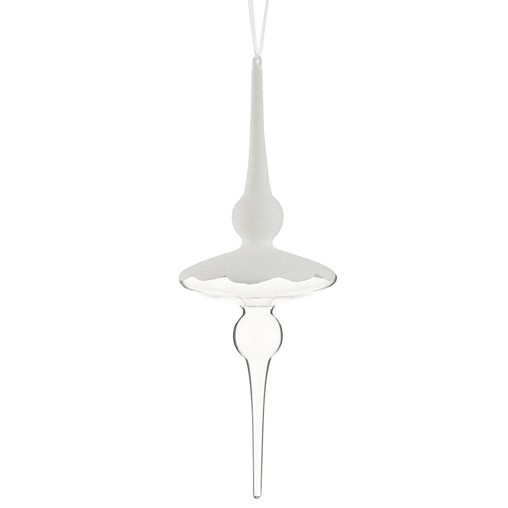 15” Glittered Glass Finial Ornament Clear White