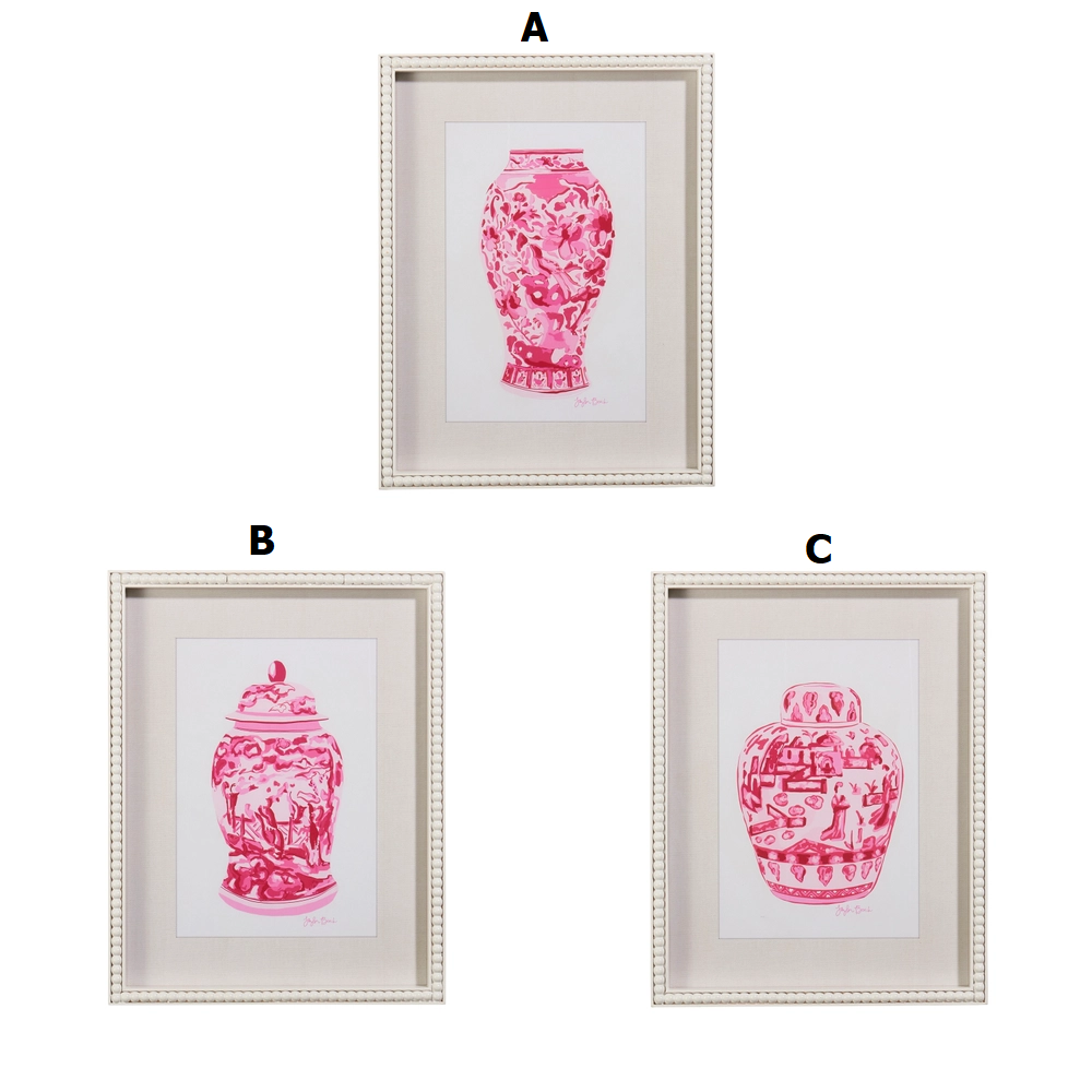 18" Pink Chinoiserie Container Framed Wall Art - Sold Individually