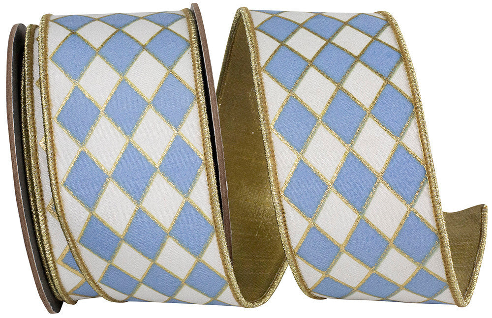 2-1/2 Inch Harlequin Solid Diamond Outline Gilded Deluxe Wired Edge White/French Blue