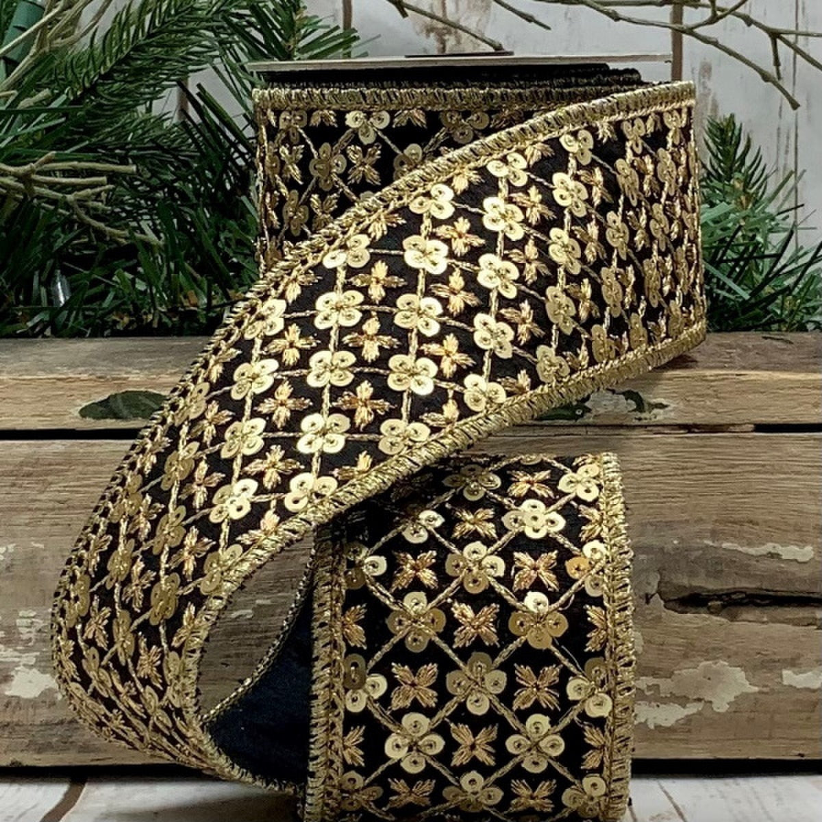 2.5" x 5yds Metallic Dupion Sequin Trim Ribbon, Black