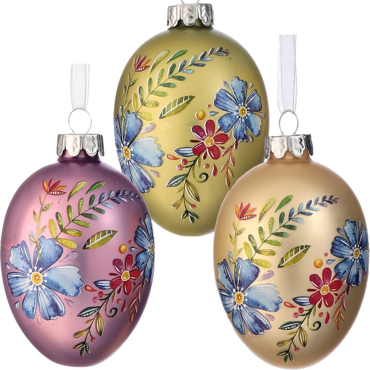 3.5" Glass Spring Blossom Egg Ornament - Sold Individually