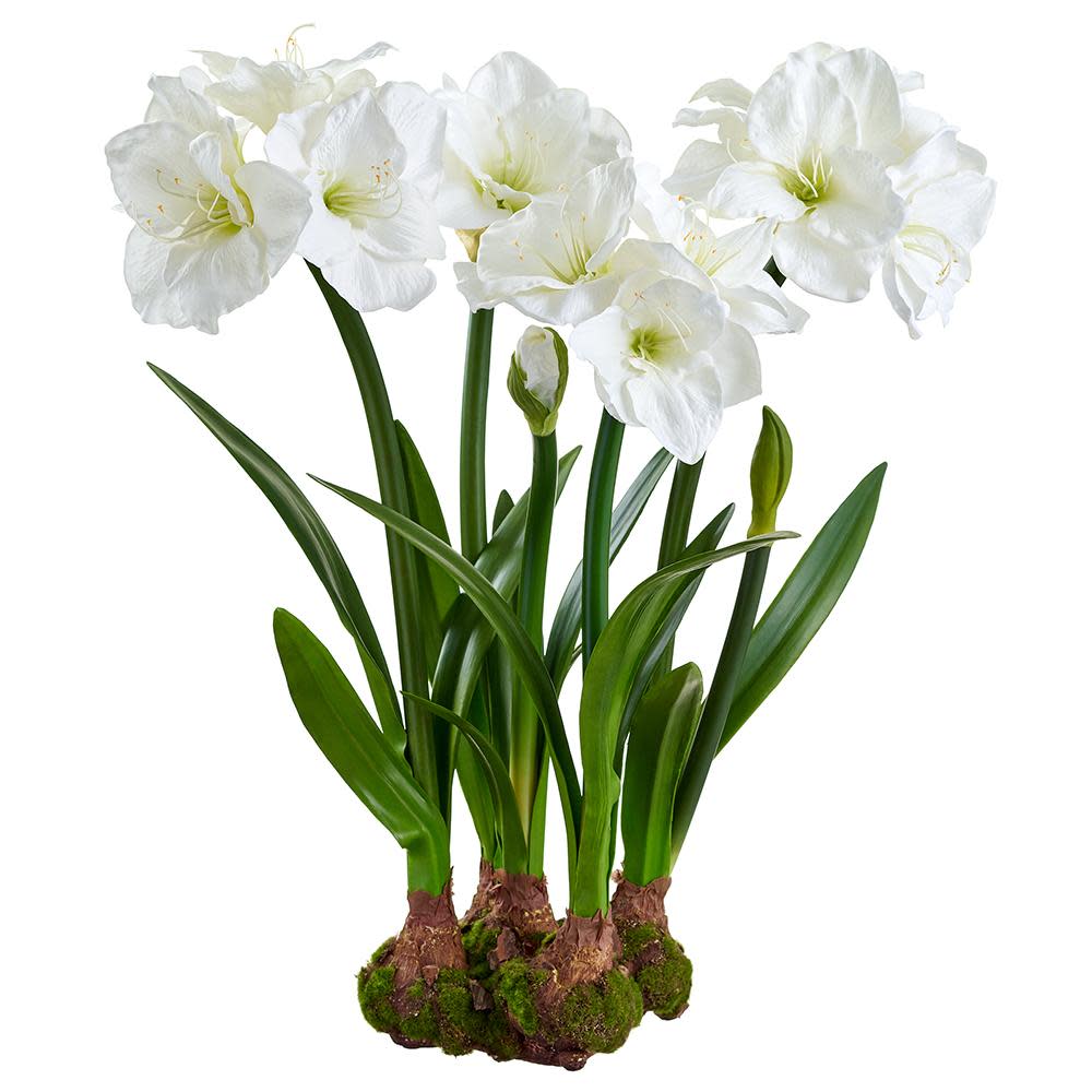 30" Amaryllis With Bulb And Moss White