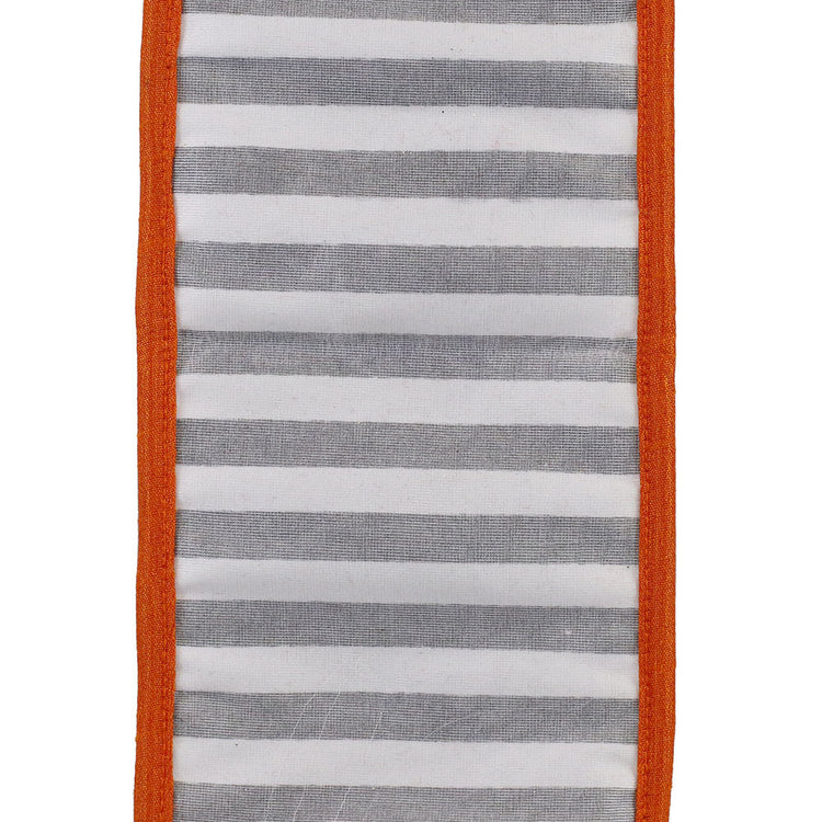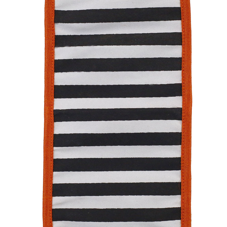 This black and white striped ribbon with a orange edge is perfect for gift wrap, baskets, wreaths and more! Use it as an embellishment for seasonal decor. The wired edge will ensure your bows will hold their shape.