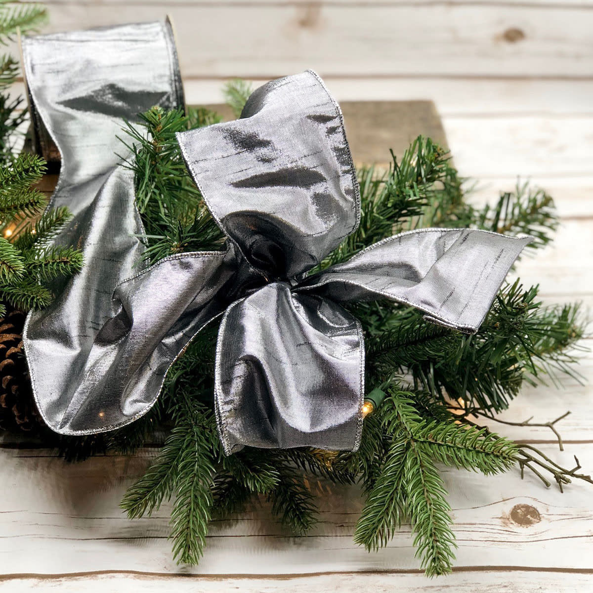 4" x 10yds Gilded Dupion Ribbon, Pewter
