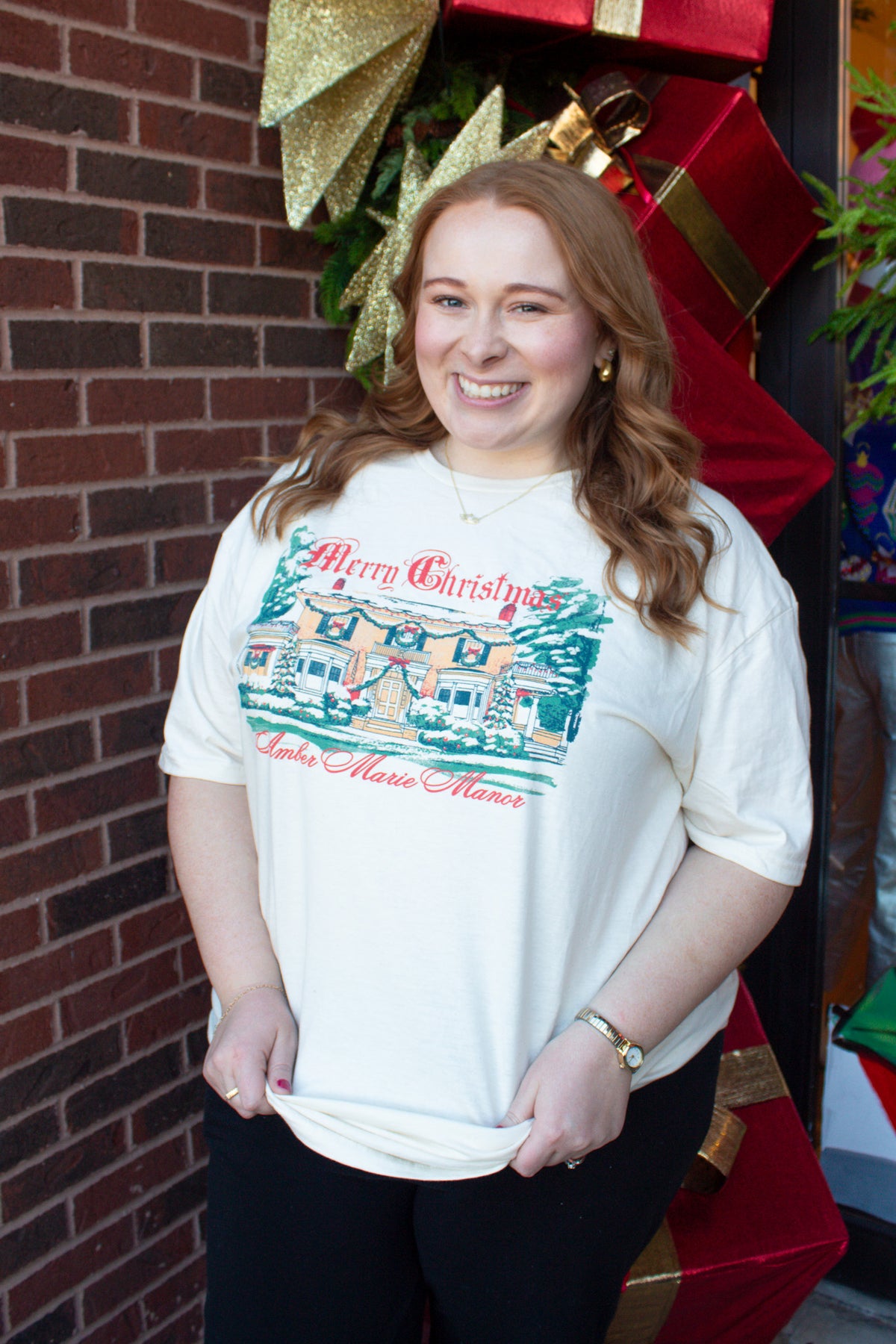 Celebrate the magic of Christmas at Amber Marie Manor with this limited-edition holiday tee.