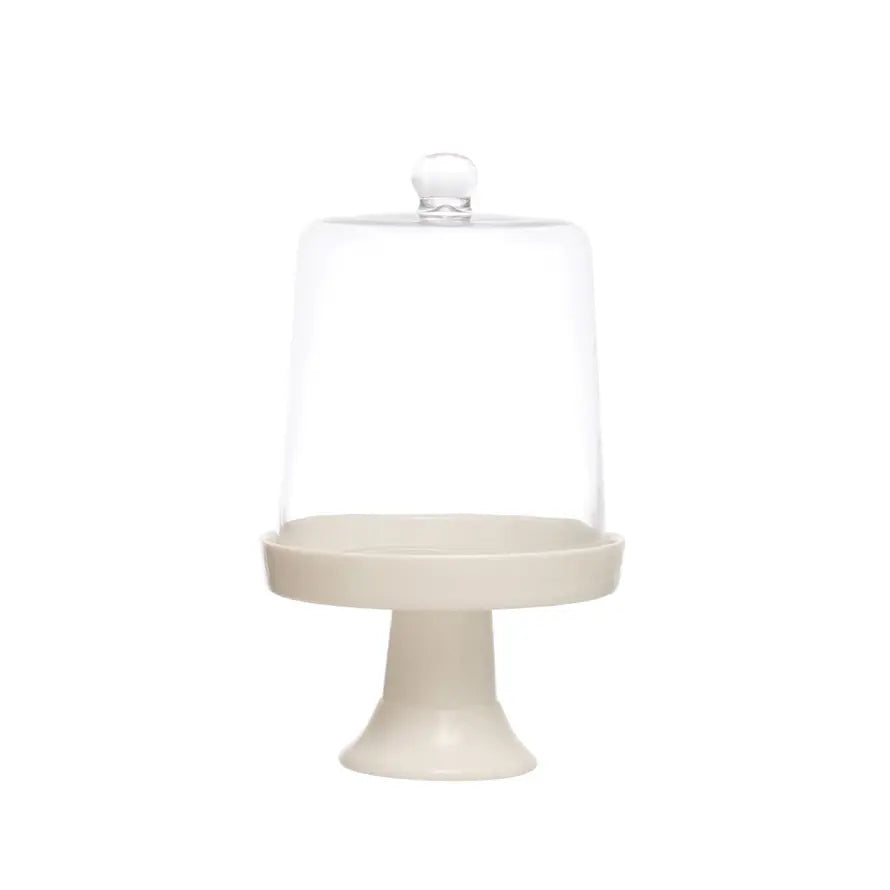 This pedestal with cloche is perfect for displaying and protecting cakes, pastries, desserts, or other treats for special occasions, parties, or everyday use in the kitchen or dining area.