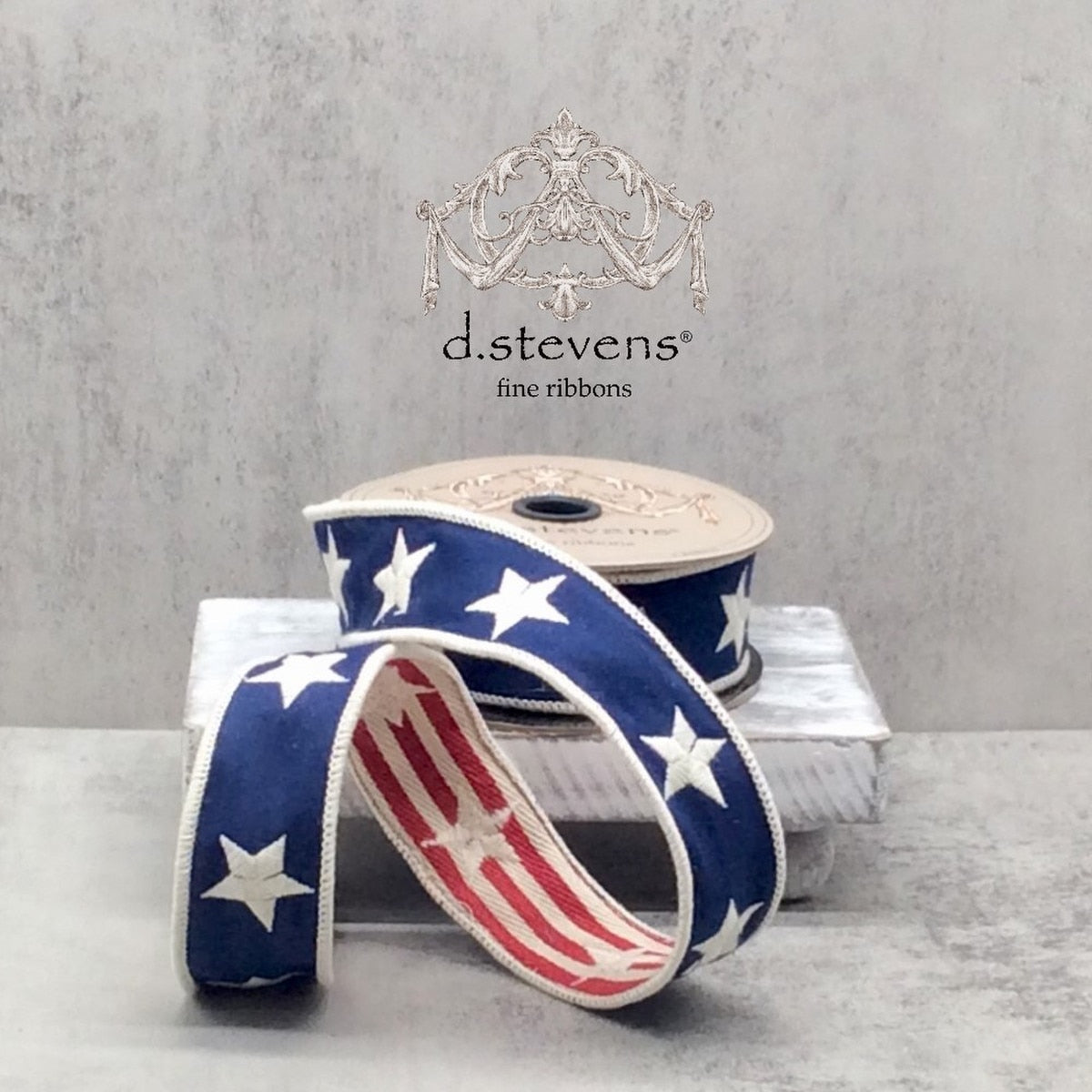 Canvas Double Sided Embroidery Stars Navy Red Stripe Backing Red Blue