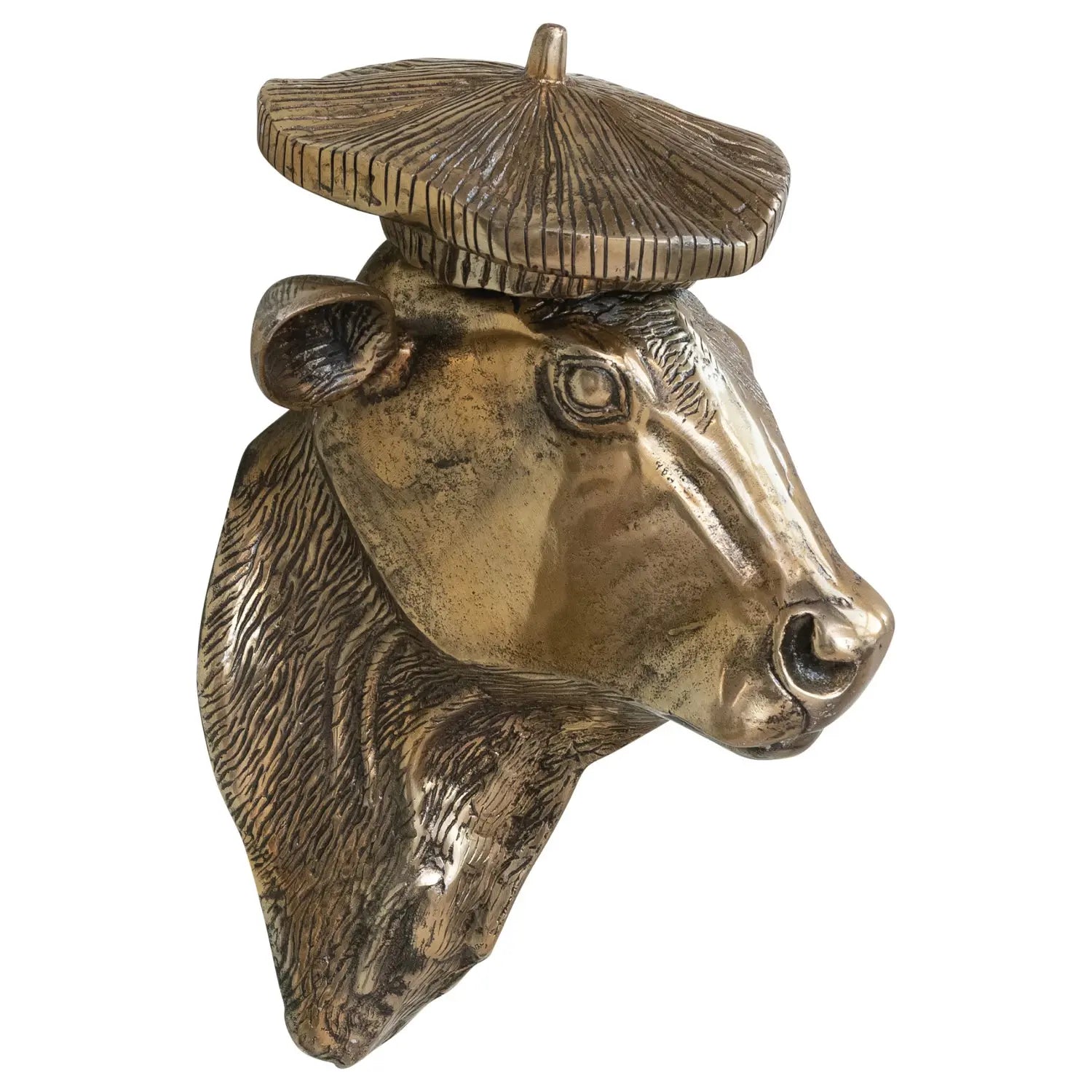 Cast Aluminum Cow Head with Beret Wall Décor