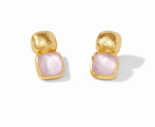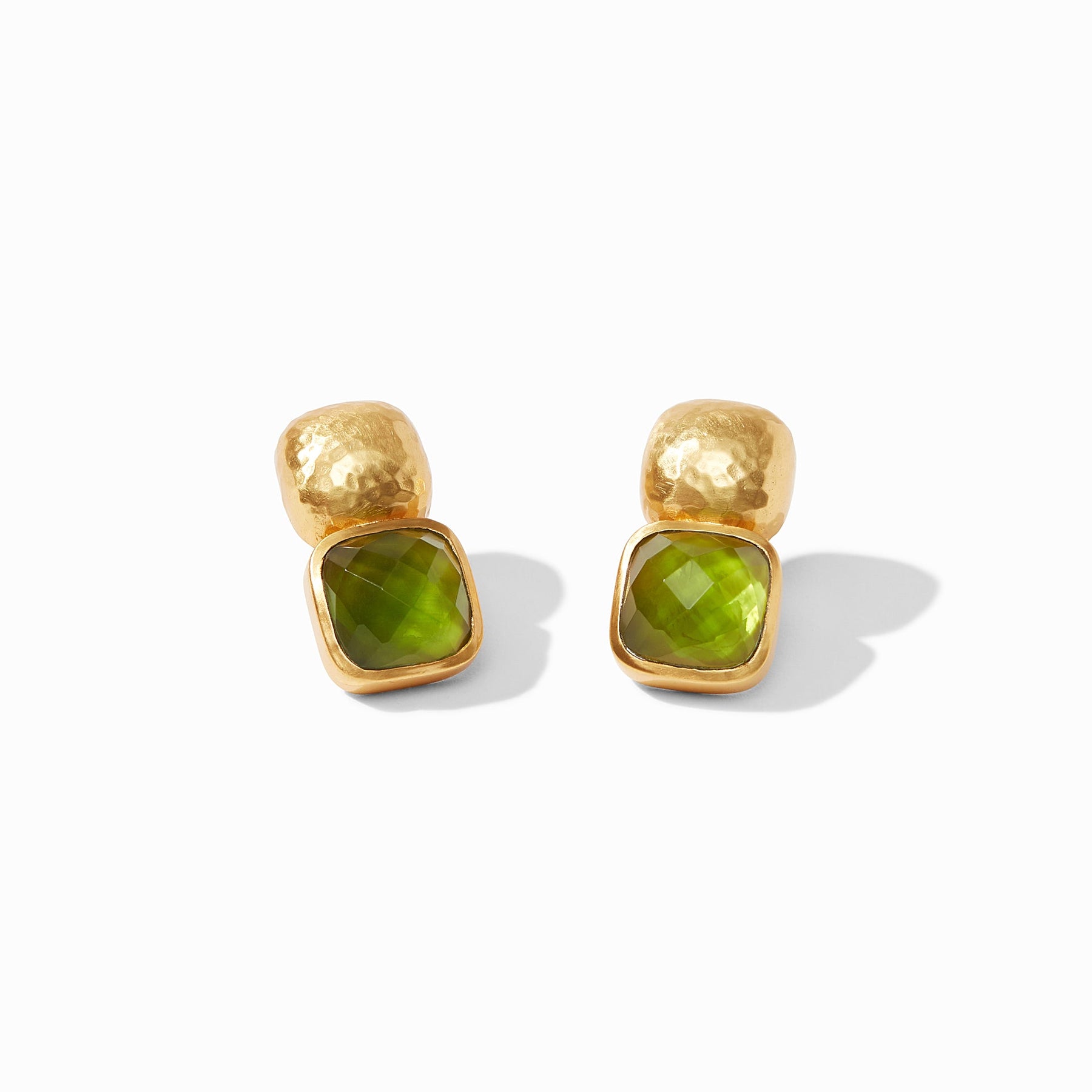 Faceted cushion-shaped gemstone of rose-cut glass topped with a hammered soft square.