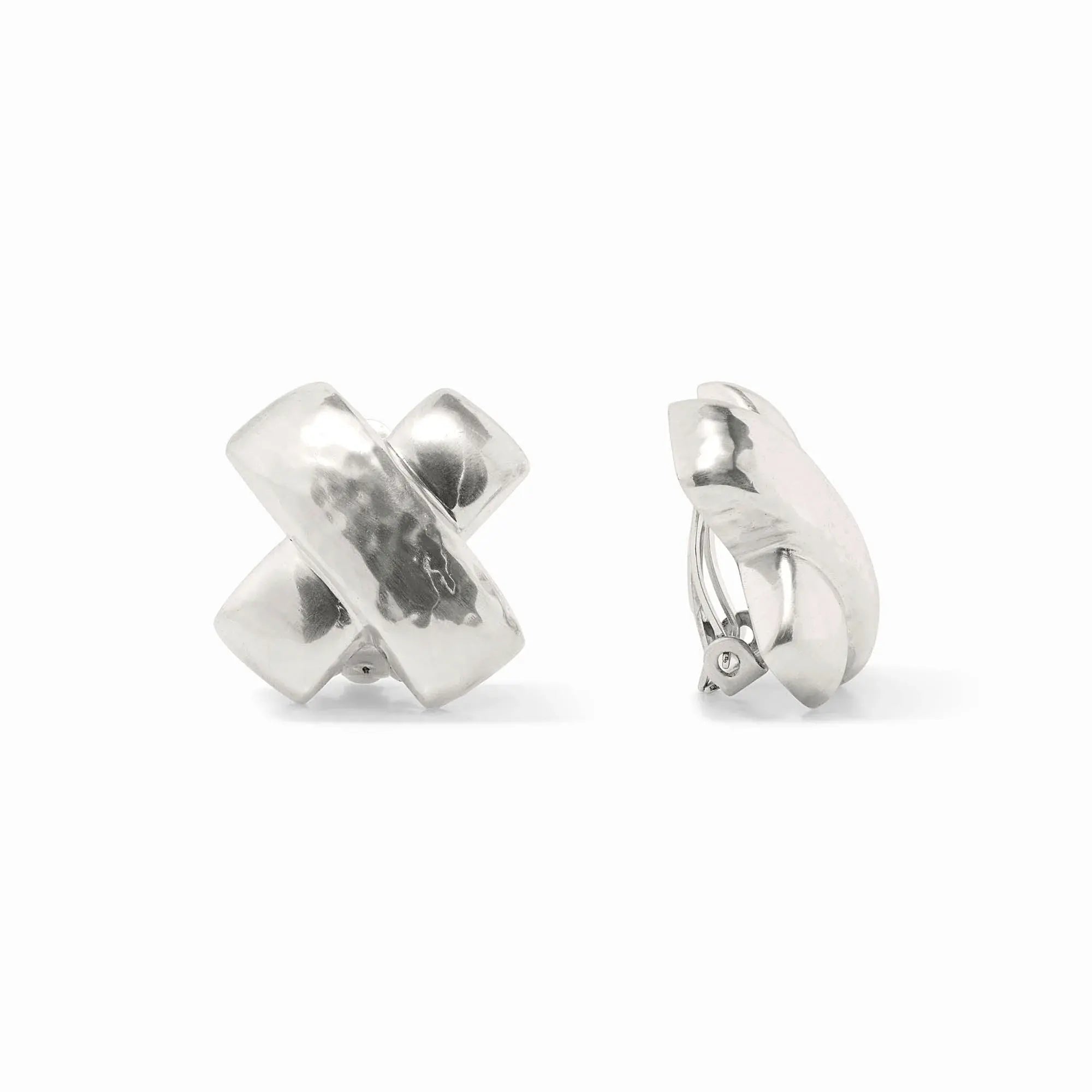 Elegant X defined by a lightly hammered finish overlapping a smooth finish.