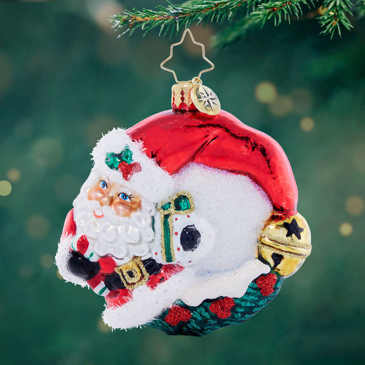 This ornament isn't your average wreath – it's a wreath of whimsy that captures the spirit of the season. Santa's rosy cheeks, twinkling eyes, and classic red hat become the centerpiece of a wreath that radiates festive cheer.