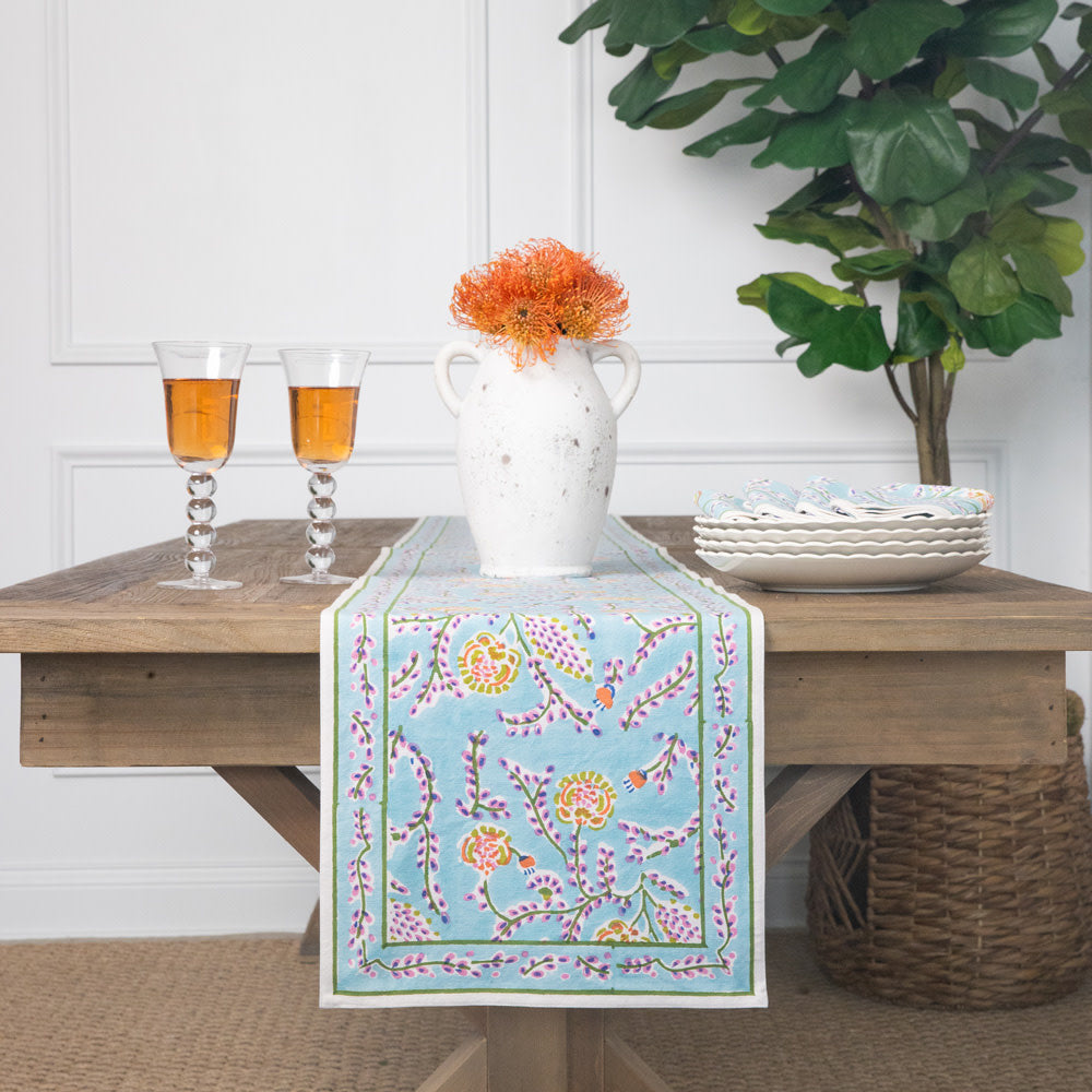 Climbing Dahlia Sky Blue Table Runner