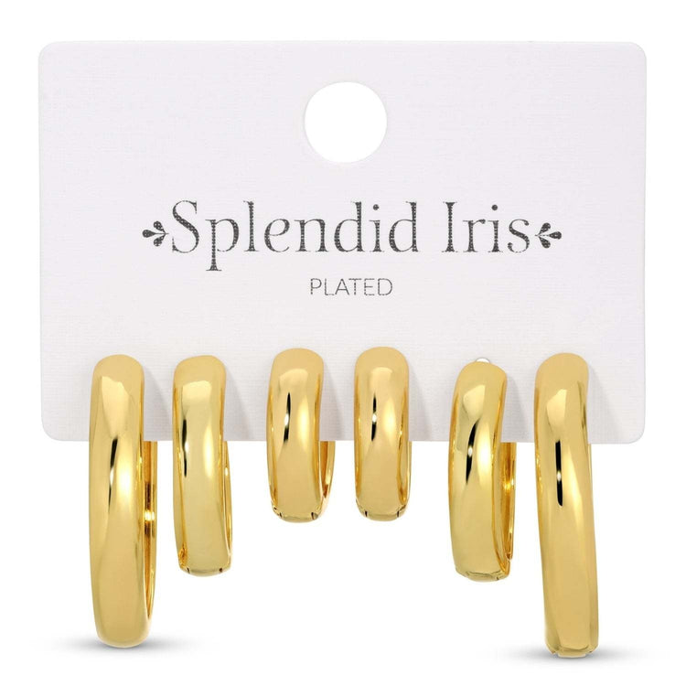 These stylish huggie earrings in graduated sizes, from delicate small hoops to bold statement pieces. Perfect for mixing and matching or wearing together for a layered look.