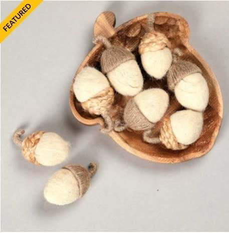 Made of soft felt, these acorns are perfect for accenting trays, bowls, or tiered displays. (Bowl not included.)