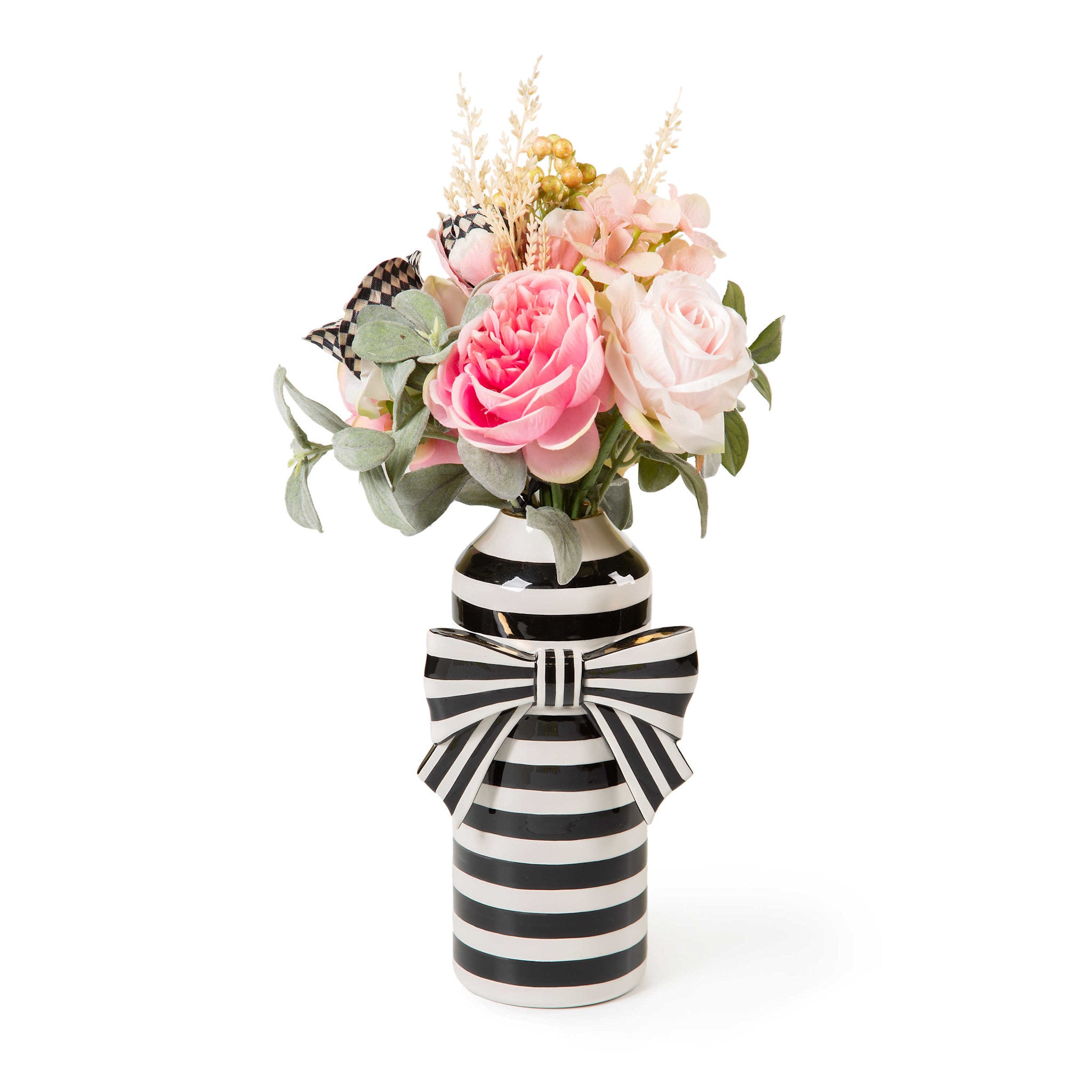 Elevate the ordinary vase with this chic Courtly Bow Vase. Made of ceramic and decorated with a dimensional striped bow, it’s trimmed with touches of gold luster.