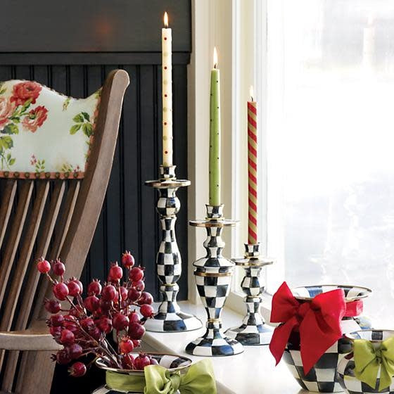 Courtly Check Enamel Candlestick - Large