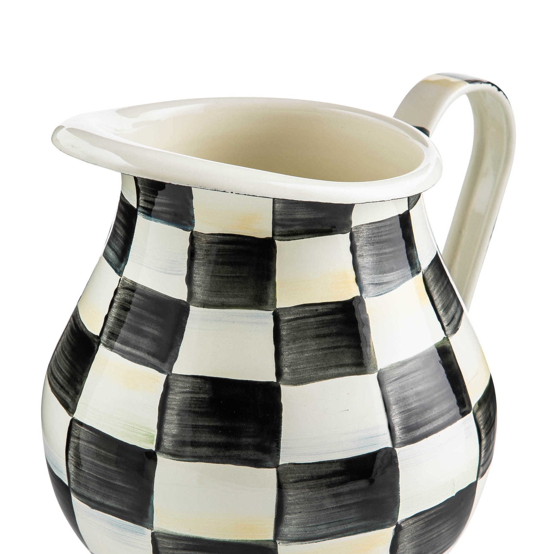For ice water, fresh-squeezed lemonade, or a refreshing punch, Courtly Check Enamel Pitcher dresses up the bar or dinner table.