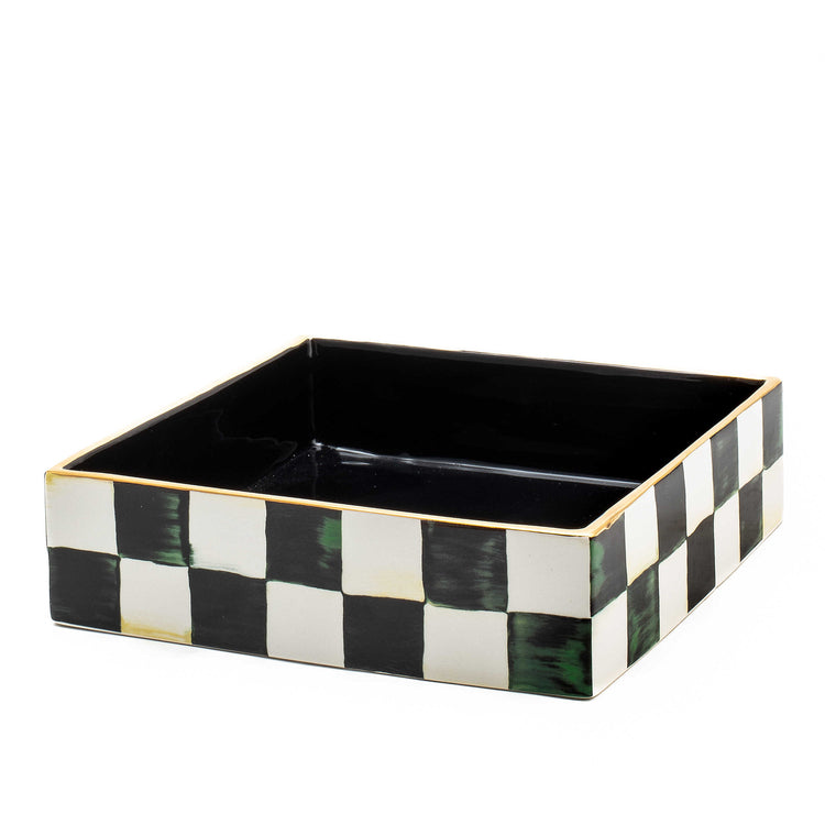 The ceramic Courtly Check® Cocktail Napkin Holder features the signature pattern and is a great way to keep napkins organized and handy for entertaining.