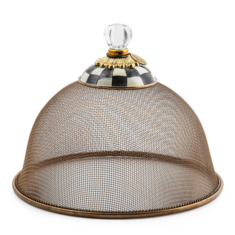 Dining outdoors has just become more pleasant. (Be gone, bugs.) The wire Small Courtly Check® Mesh Dome is banded in bronzed stainless steel, detailed with enamel and brass accents, and crowned with a glass knob.