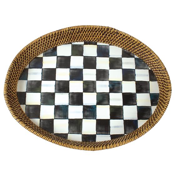 Courtly Check Rattan & Enamel Serving Tray