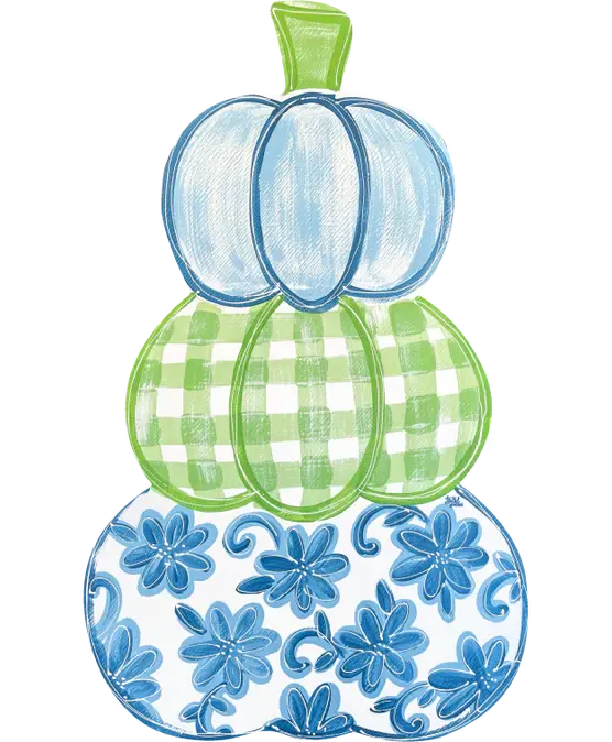 Door Hanger Green and Blue Wood Stacked Pumpkins With Flowers