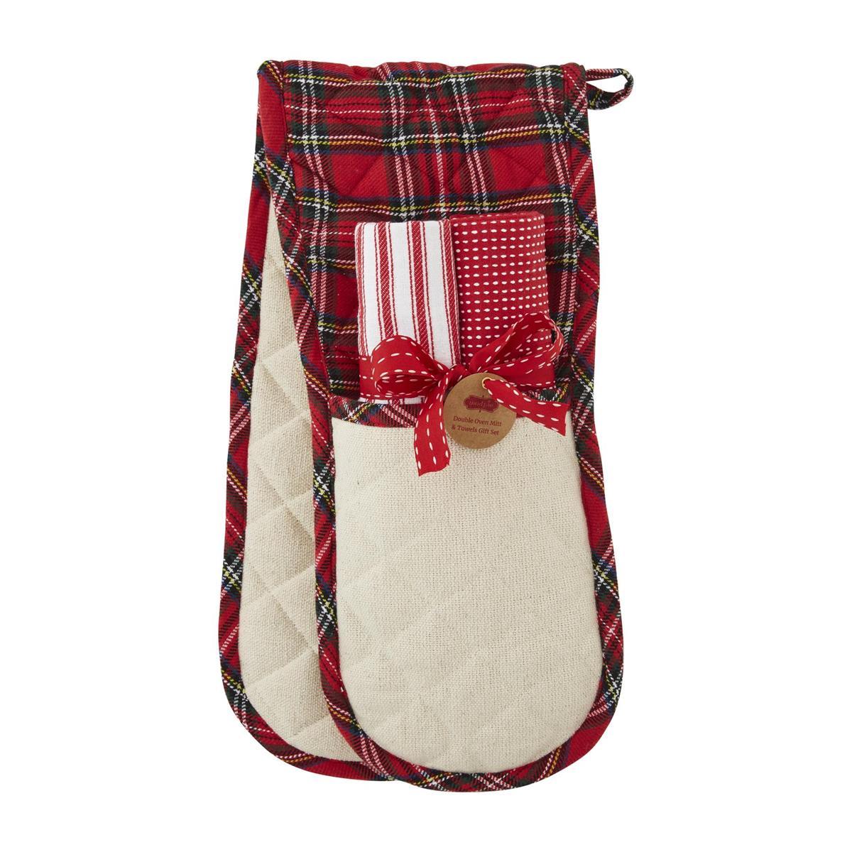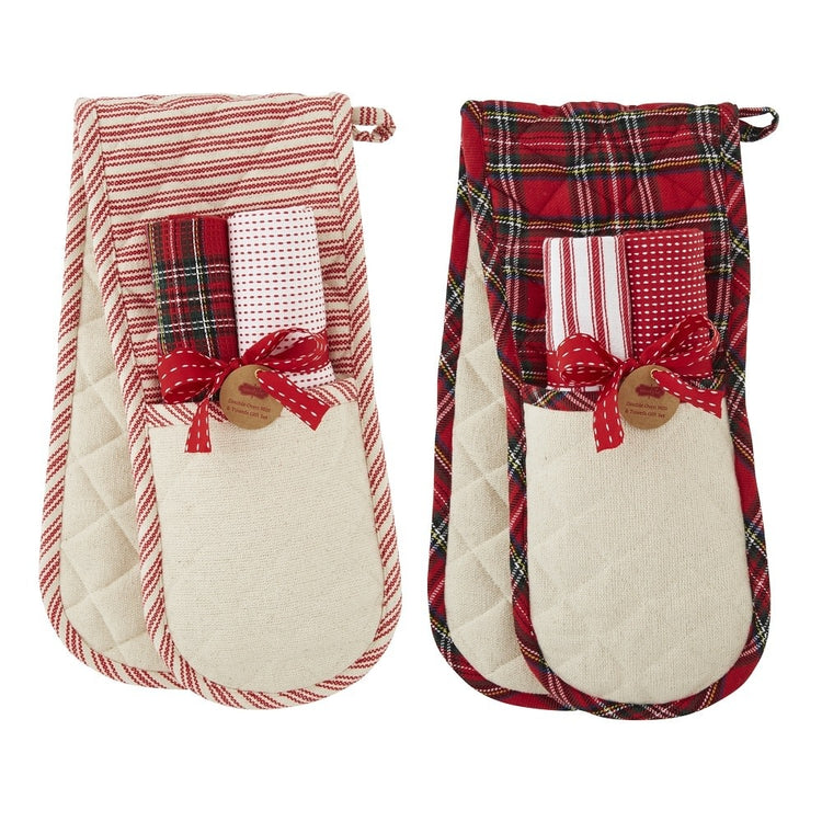 Grainsack double oven mitt protects both hands and arms when handling hot dishes. Comes with two hand towels.