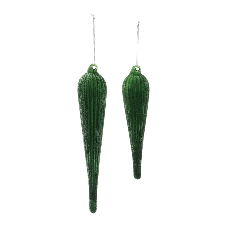 Adorn your holiday display with this hand-blown glass ornament. A timeless and elegant teardrop shape, this ornament features a fluted design with a shimmering finish for a touch of classic charm.
