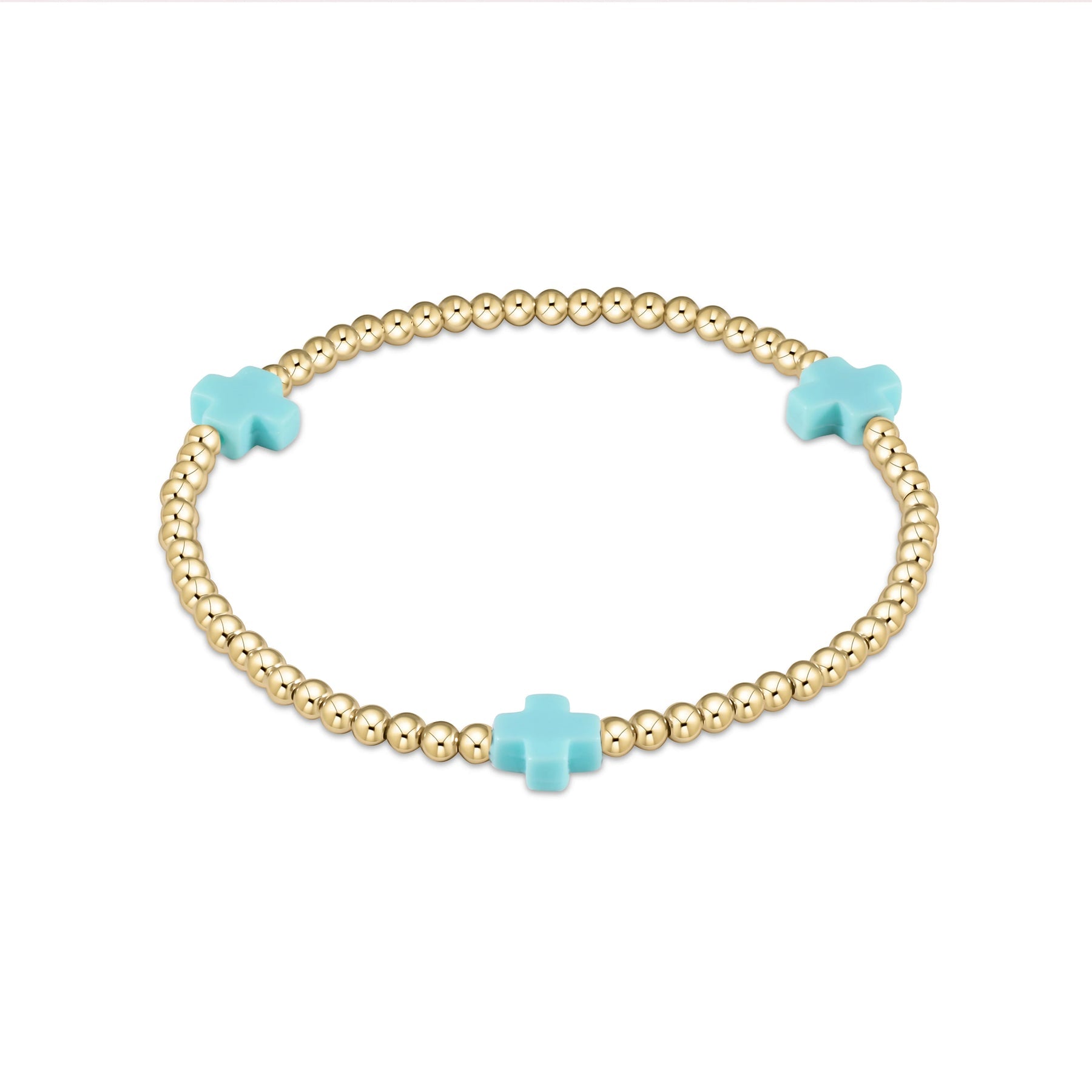 Egirl Signature Cross Gold Pattern 3mm Bead Bracelet - Turquoise
